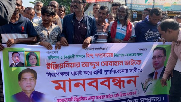 বরিশাল ১ আসনে প্রার্থী পরিবর্তনের জন্য আগৈলঝাড়ায় বিক্ষেভ মিছিল ও মানববন্ধন