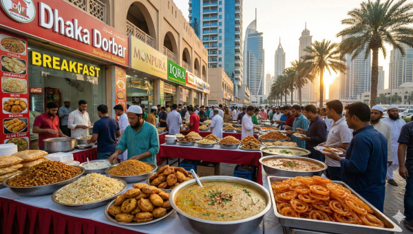পবিত্র মাহে রমজান উপলক্ষে সংযুক্ত আরব আমিরাতে দেশিয় ইফতারের পসরা সাজিয়ে বসেছে বাংলাদেশি রেস্টুরেন্টগুলো।